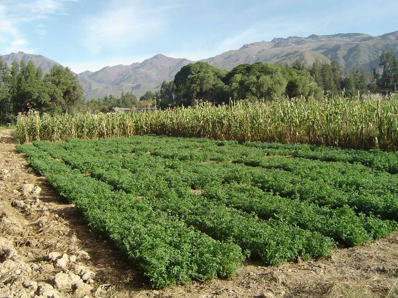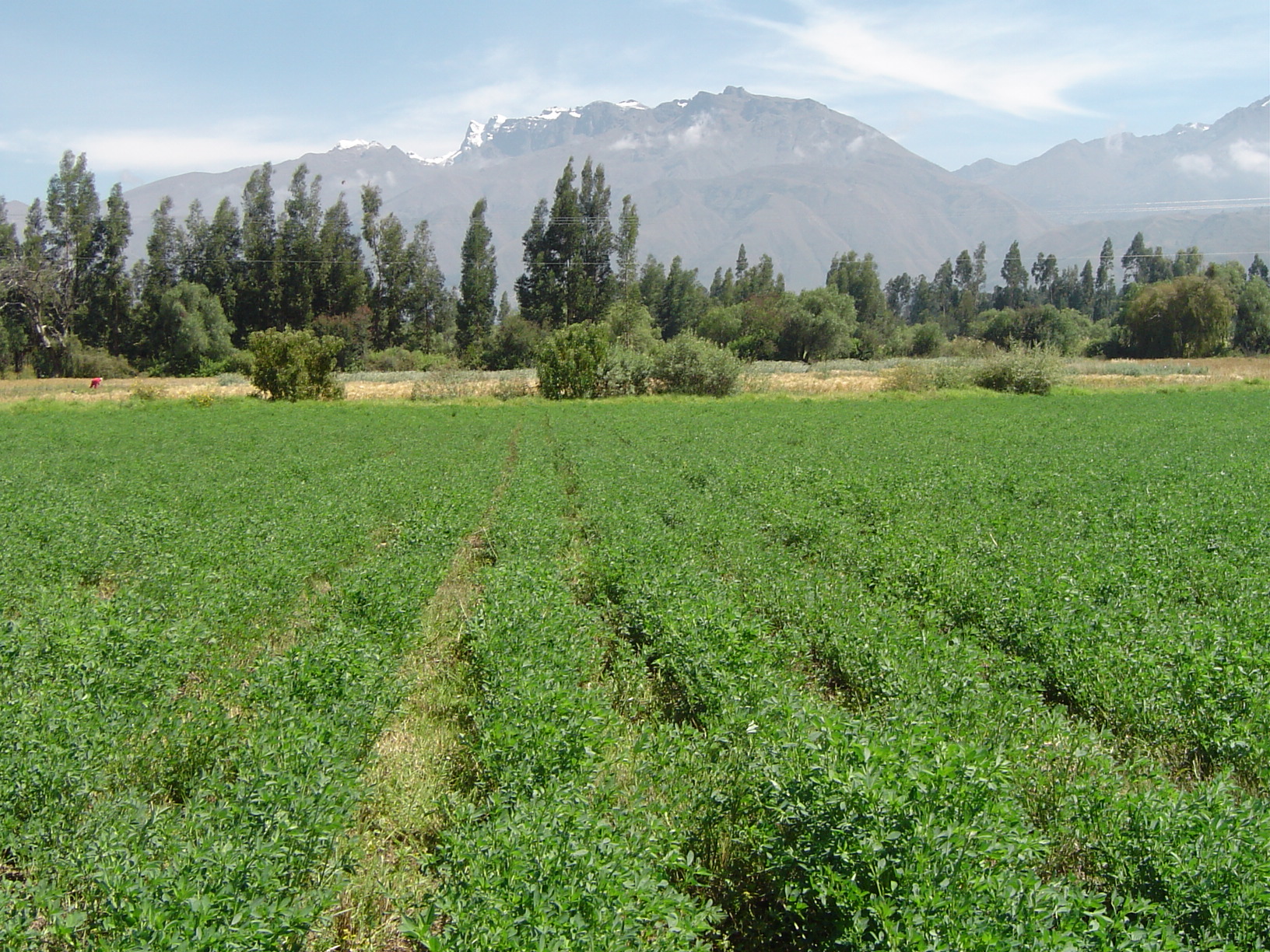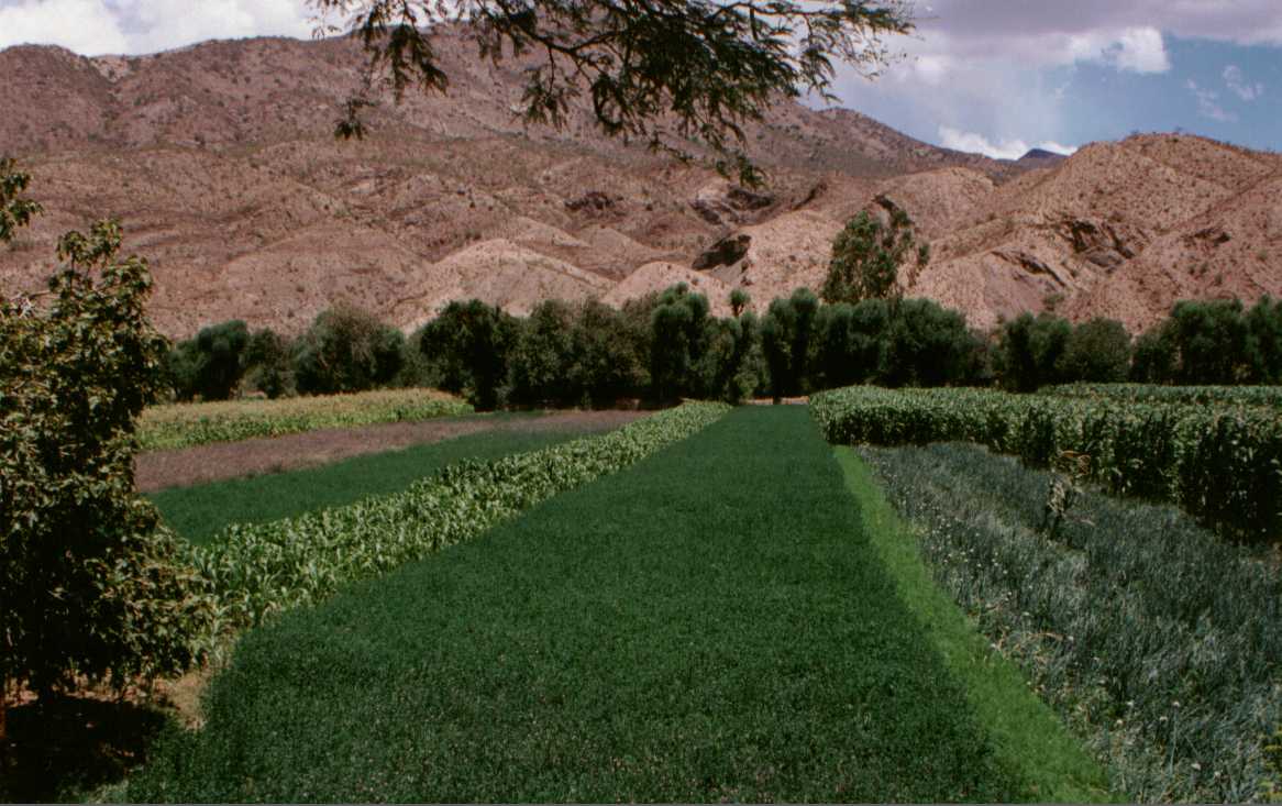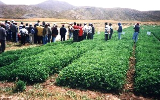 Parcelas de producción de semilla de alfalfa, (© Proyecto Rhizobiología Bolivia, 1999). |