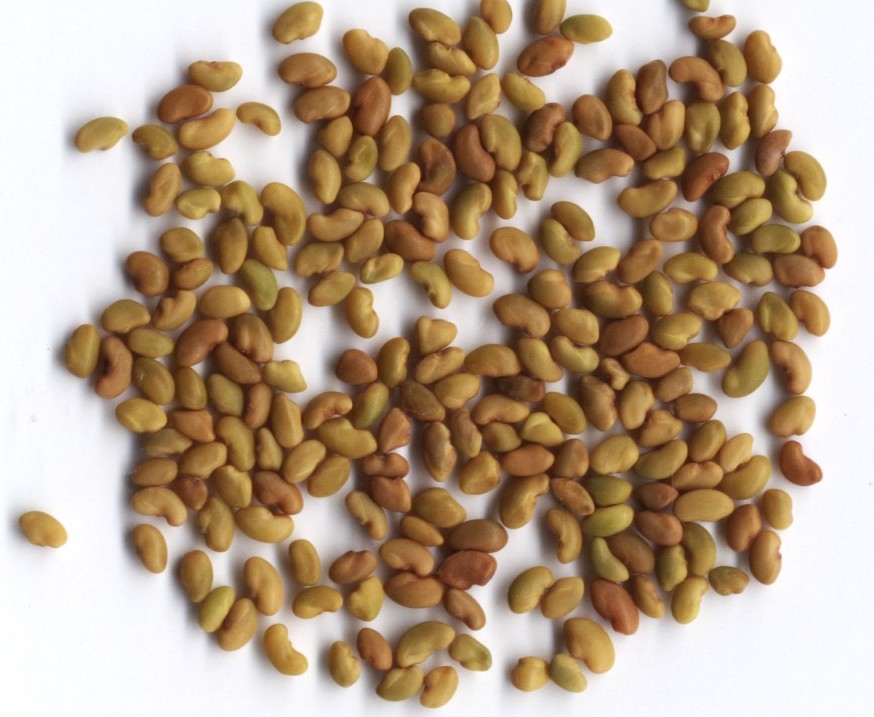 Semillas de alfalfa; lucerne (inglés), luzerne (francés). El peso referencial de 1000 semillas es de 2.0 gramos. (© SEFO, 2005).