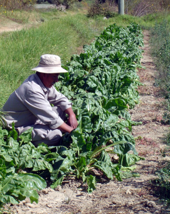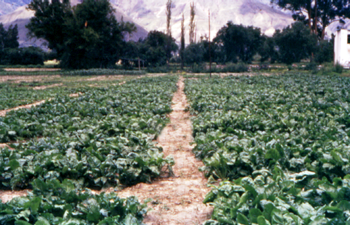 Exuberante desarrollo de la parte aérea de B. vulgaris, en parcelas en La Violeta, a 100 días de la siembra. (© CIF "La Violeta", 2006). |