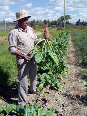 Desarrollo de la parte radicular de B. vulgaris, en parcelas en La Violeta, a 100 días de la siembra. (© CIF "La Violeta", 2006). |