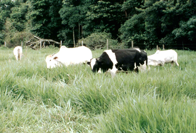 Brachiaria híbrido "Mulato 1", nueva opción de importantes y destacadas cualidades forrajeras en parcelas demostrativas del CIF en el Valle del Sacta (© CIF, 2005). |