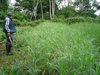 Parcelas de utilización de B. decumbens en el fundo universitario Valle del Sacta en el trópico húmedo de Cochabamba. (© Proyecto Rhizobiología Bolivia, 1998).