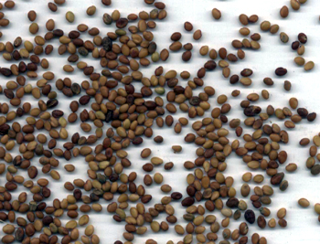 Semillas de trébol de Alejandría. El peso referencial de 1000 semillas es de 3.45 gramos. (© CIF "La Violeta", 2005).