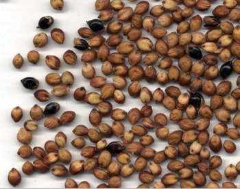 Semillas de sorgo forrajero. El peso referencial de 1000 semillas es de 15.23 gramos. (© SEFO, 2005).