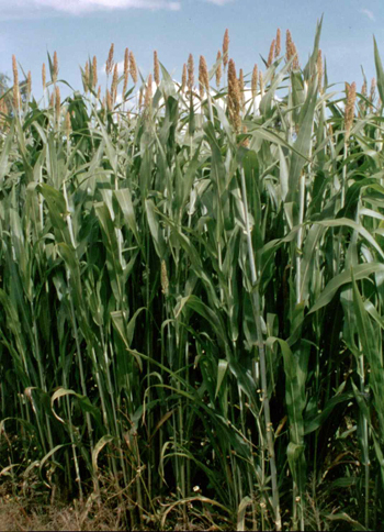 Desarrollo de sorgo forrajero en parcelas de investigación en Mizque. (© Proyecto Rhizobiología Bolivia, 1999). |