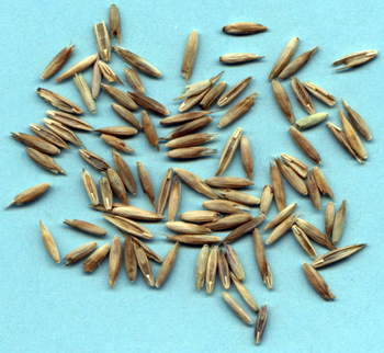 Semillas de festuca alta. El peso referencial de 1000 semillas es de 2.65 gramos. (© CIF "La Violeta, 2005).