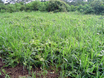 Kudzú asociado con Brachiaria decumbens en parcelas de pastoreo en el Valle del Sacta (© OpUsLi, 2005). |