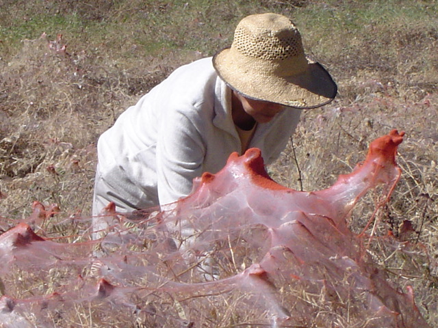 Infestación de parcelas de veza común por arañuela en el valle central de Cochabamba, como efecto de condiciones favorables para la plaga, en especial sequía y humedad extremadamente seca del ambiente . (© Revista de Agricultura, 2005). |